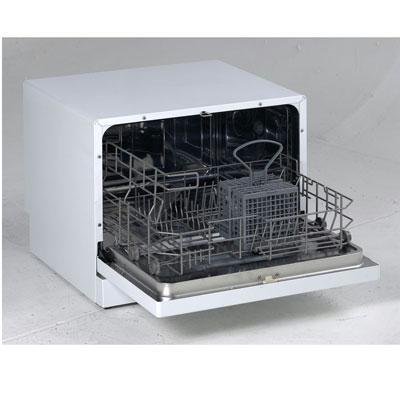 This sleek 6 Place Setting Countertop Compact Dishwasher can hold up to 6 standard place setting and can sit conveniently on your kitchen countertop. This unit is Energy Star Rated for the environmentally conscious. Easily controlled with mechanical settings, this dishwasher offers 5 different wash cycles to choose from, to guarantee a satisfactory clean. The 5 wash cycles include pre-wash, economy, rapid, normal, intensive. The intensive feature raises the water temperature up to 156.2 Degrees F (69 Degrees C), allowing for the sterilization of all your dishes.Other features offered by the 6 Place Setting Countertop Compact Dishwasher dishwasher include an automatic rinse agent dispenser, a durable super jet spray arm and stainless steel interior, low water consumption, and quiet operation. This practical countertop dishwasher can easily quick-connect to any kitchen tap for immediate use.- 2 year in-home warranty (included in price)